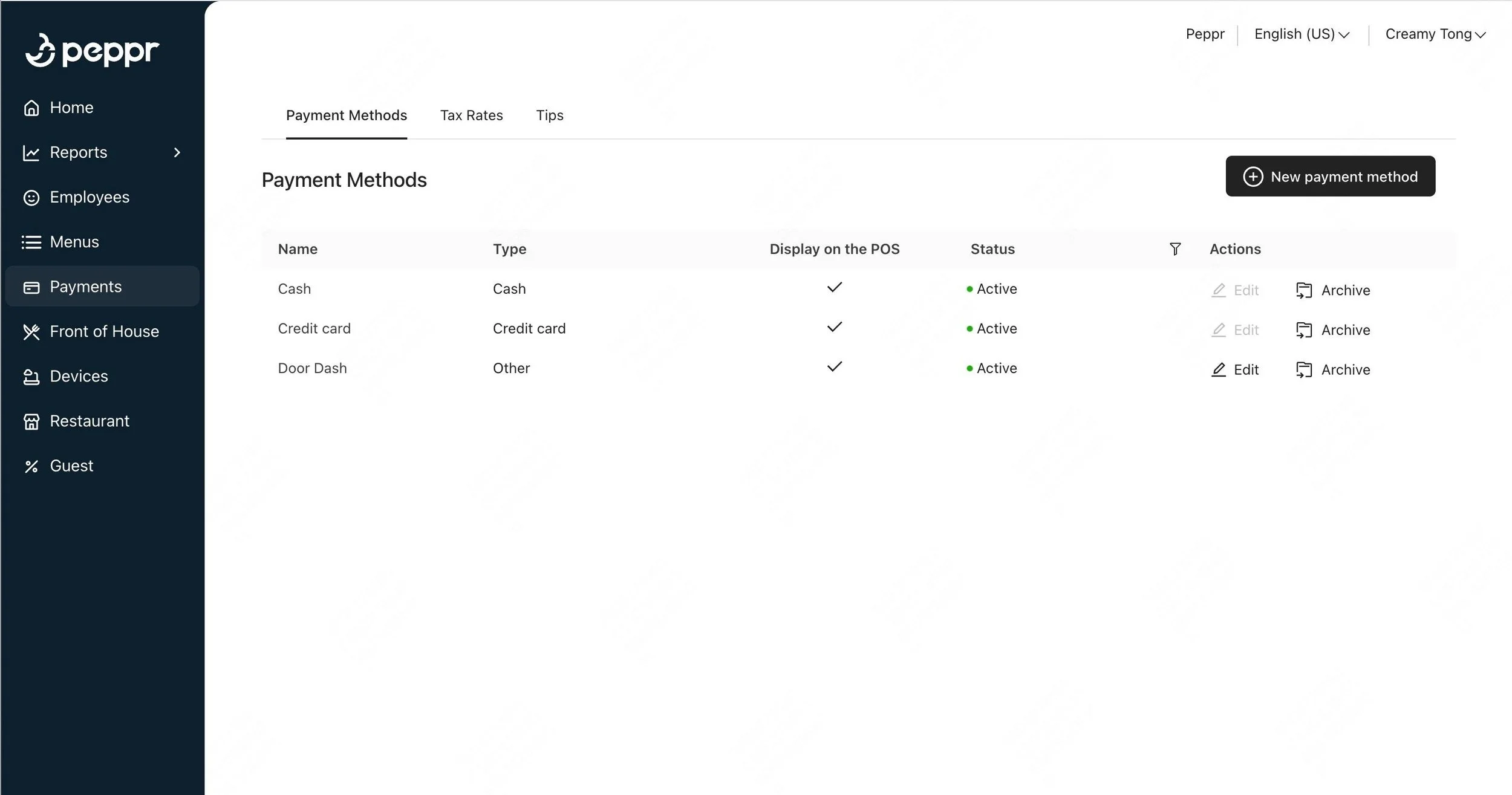 Learn how to set up and customize payment methods, including cash, card, and other options, to reflect in reports and enhance transaction management.